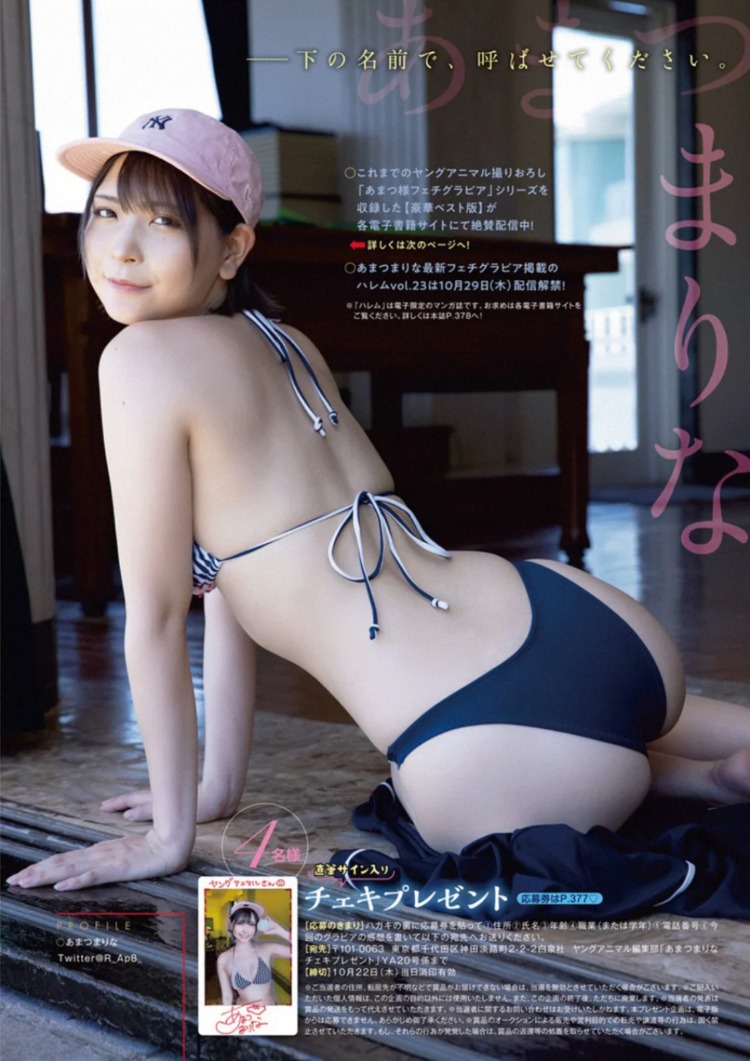 あまつまりな我也推荐过很多次了最近她还改了名字,以前是叫あまつ様,其实我觉得改的都不成功,不利于在中国最推广。看多了她的写真会有一种是男孩子的感觉,就是她的颜偏男性,加上在日本模特和COSER她又是一个大骨架。这次Young Animal上的这套图有几张就没有规避了她这种缺点。本期另一位妹子池本しおり算是一位比较新的新人,2002年12月15日出生,150cm,波围81cm。
