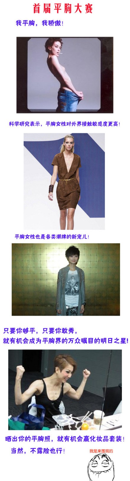 虽然是个没啥吸引力的奖品,但它仍奇迹般调动了一些妹纸的积极性……各种贫乳自爆接踵而至。